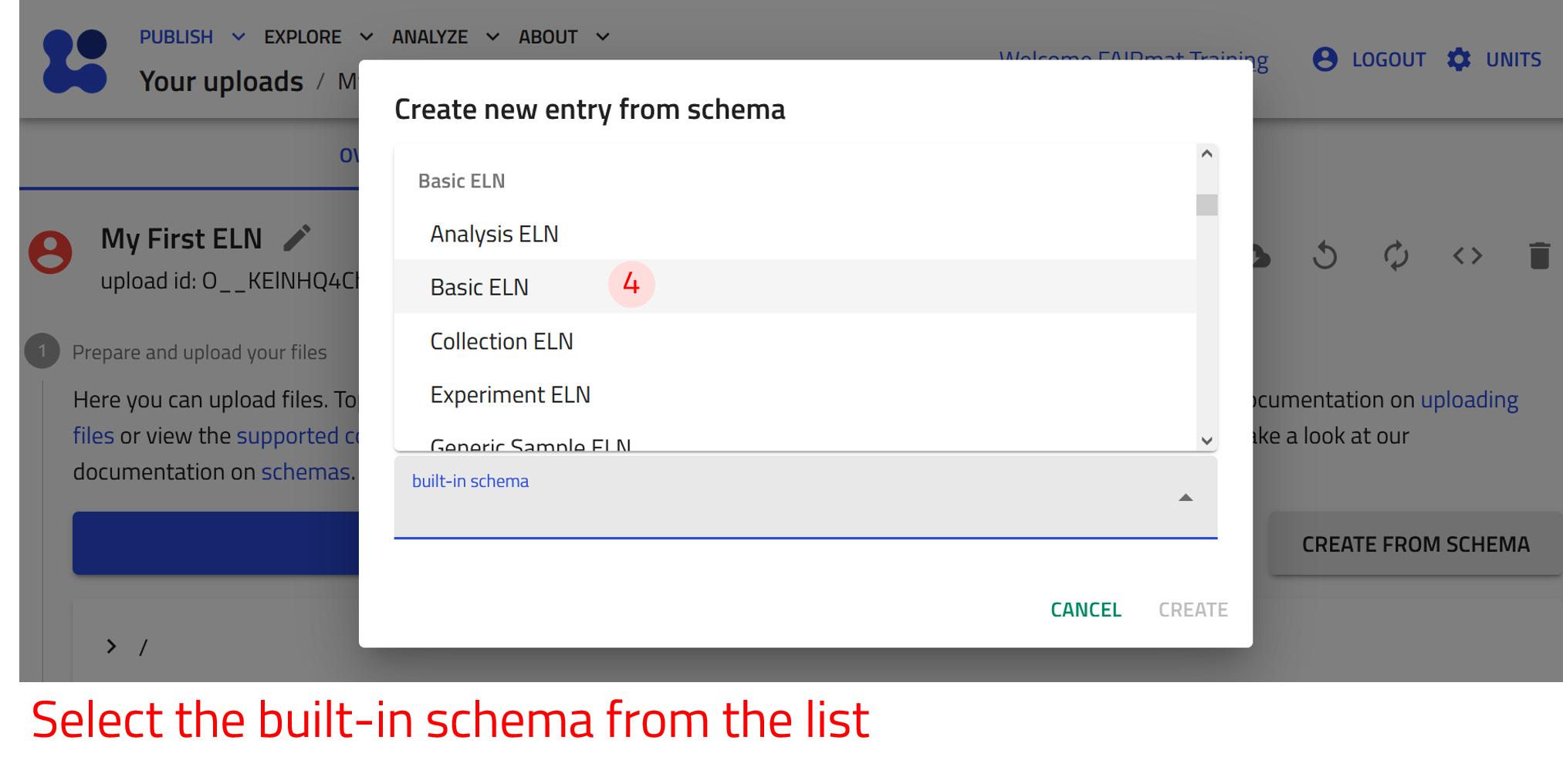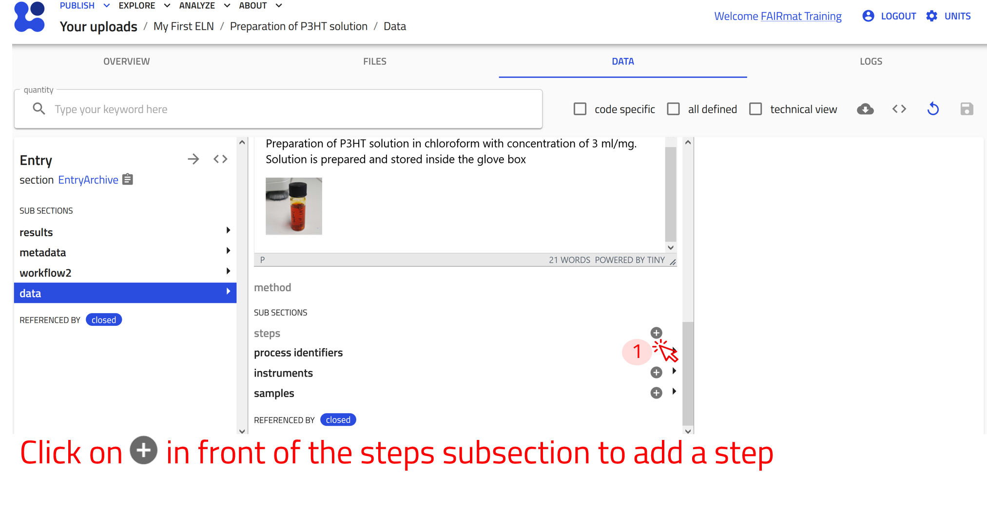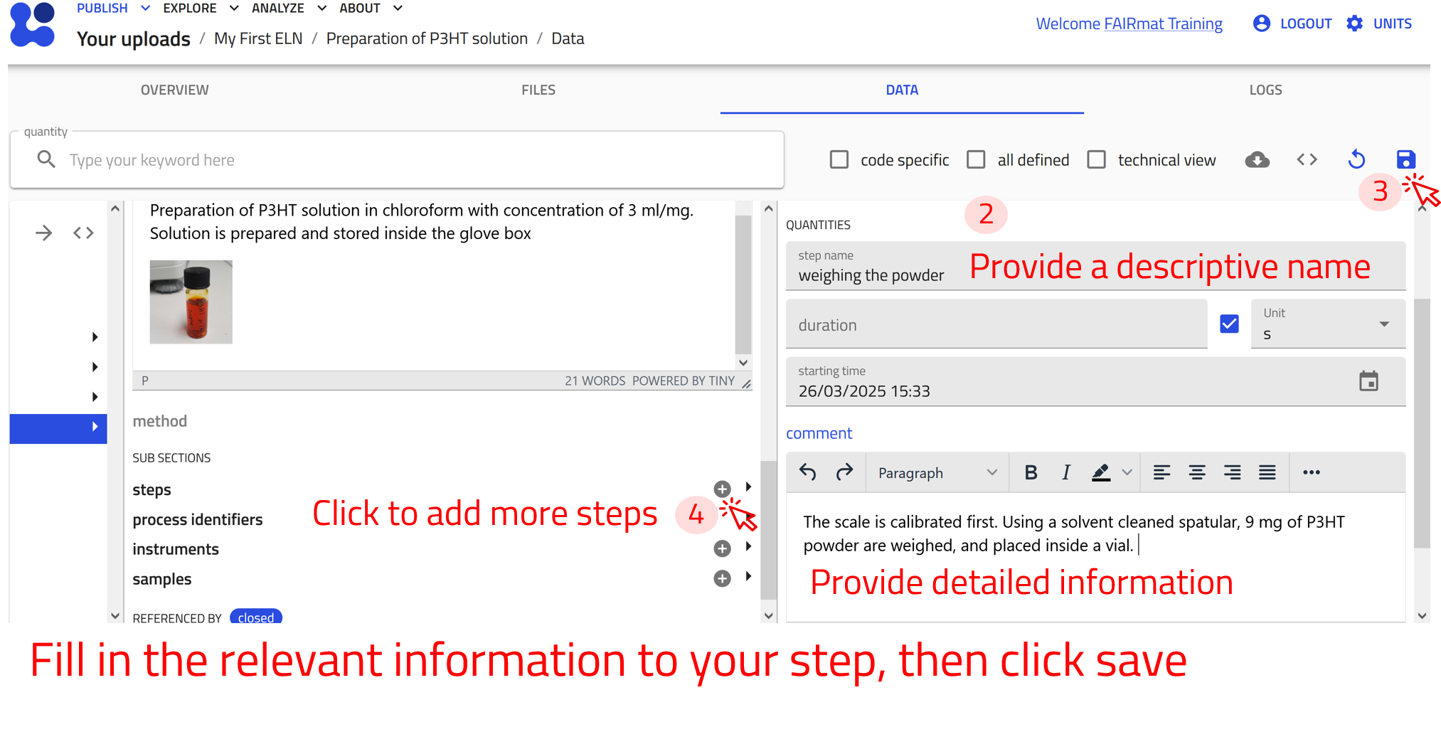 Use the arrow buttons ⬅️➡️ below to follow the steps for creating ELN entries using the built-in schema.