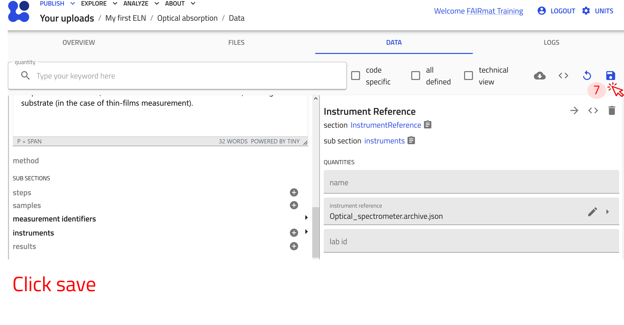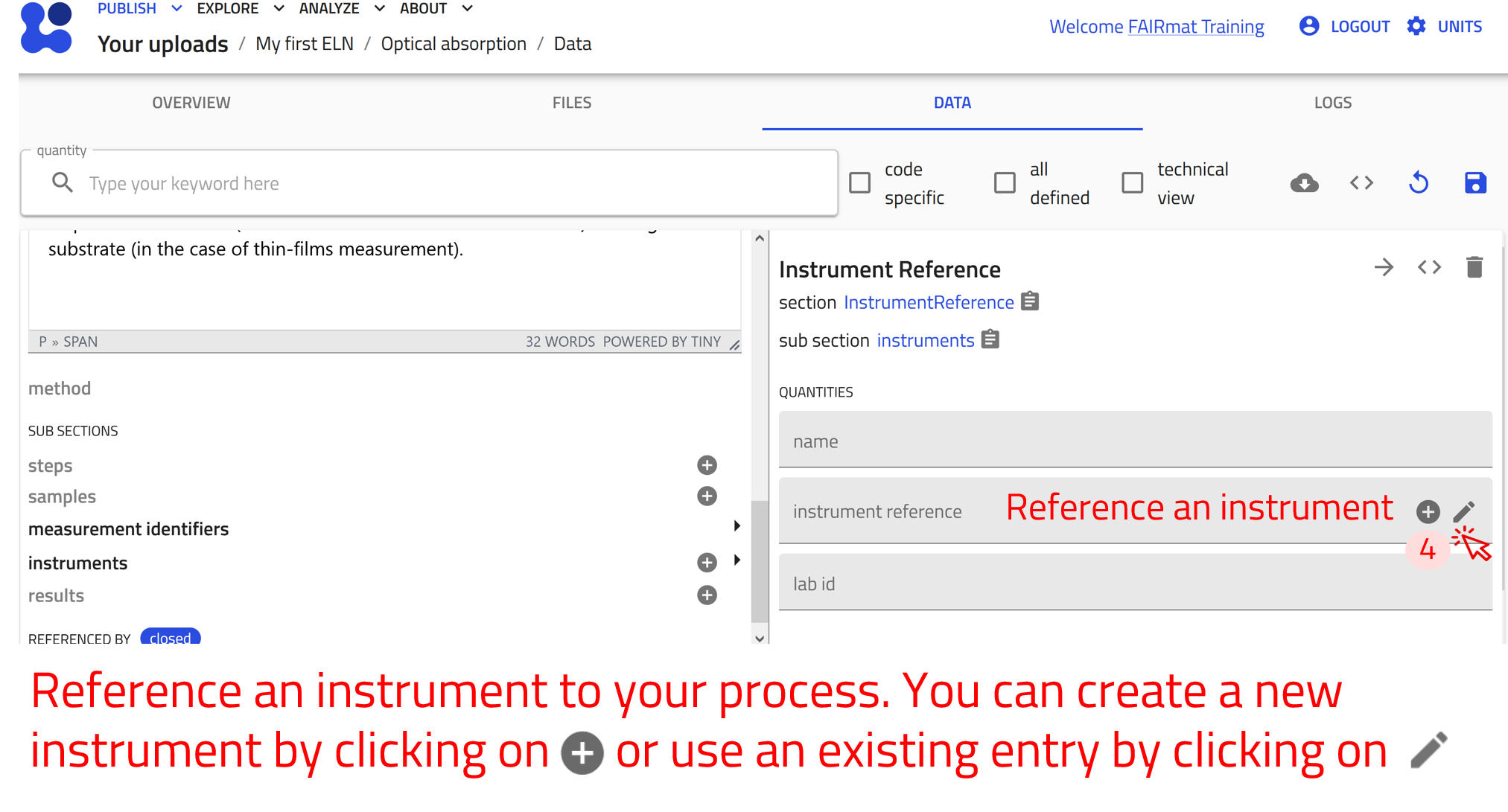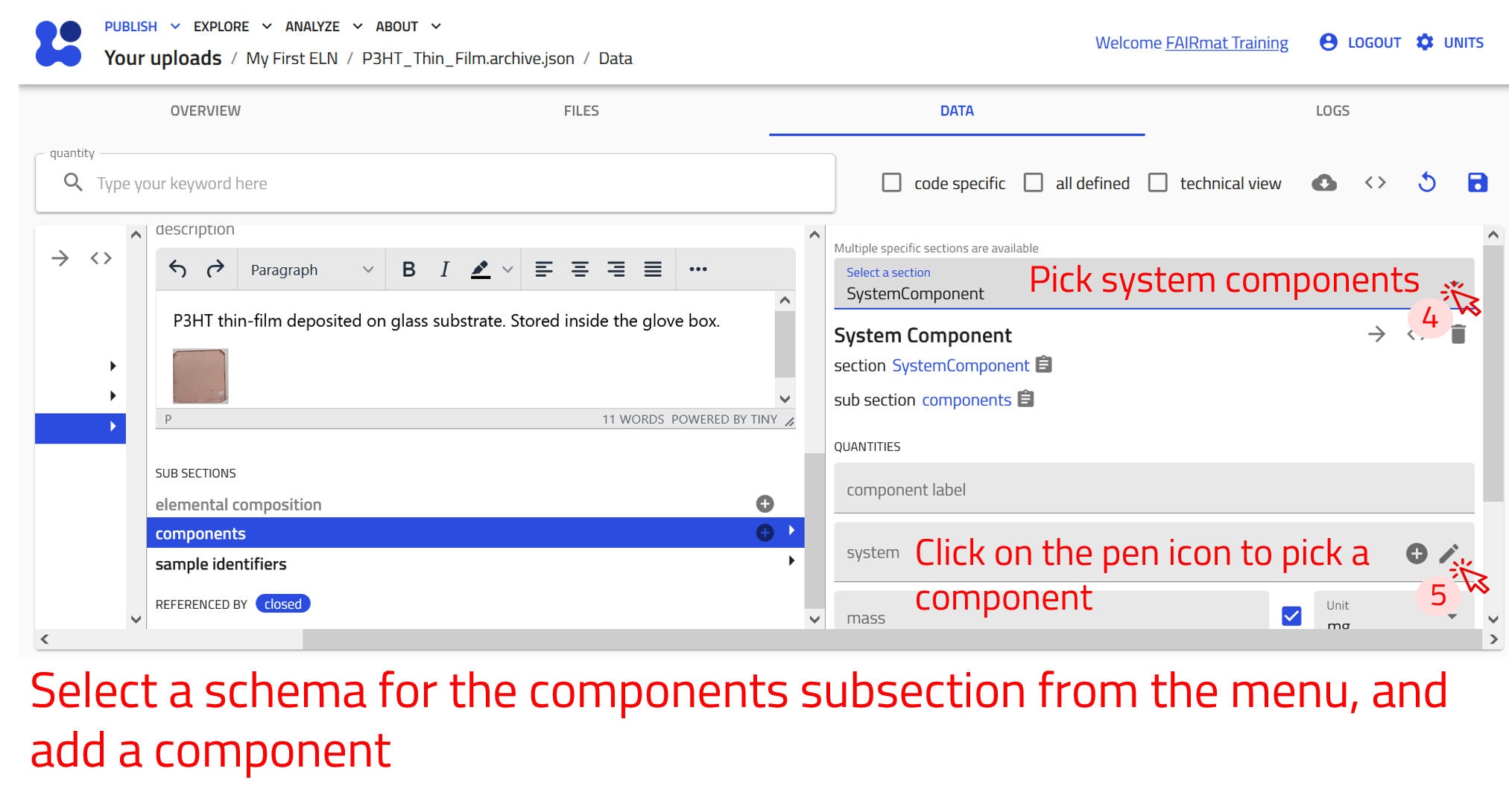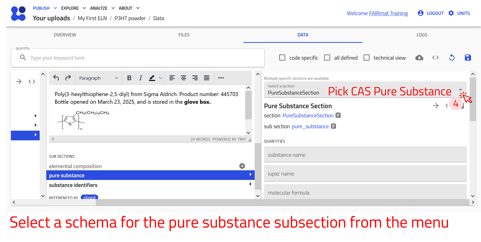 Use the arrow buttons ⬅️➡️ below to follow the steps for creating ELN entries using the built-in schema.