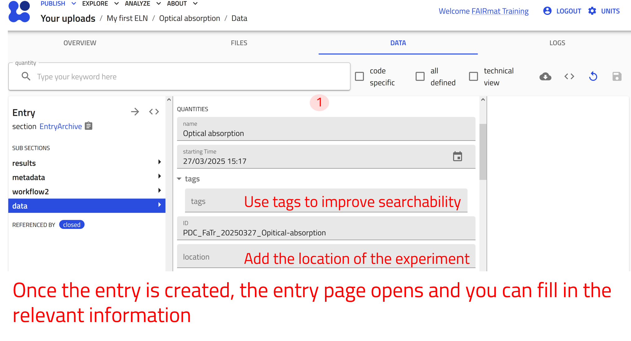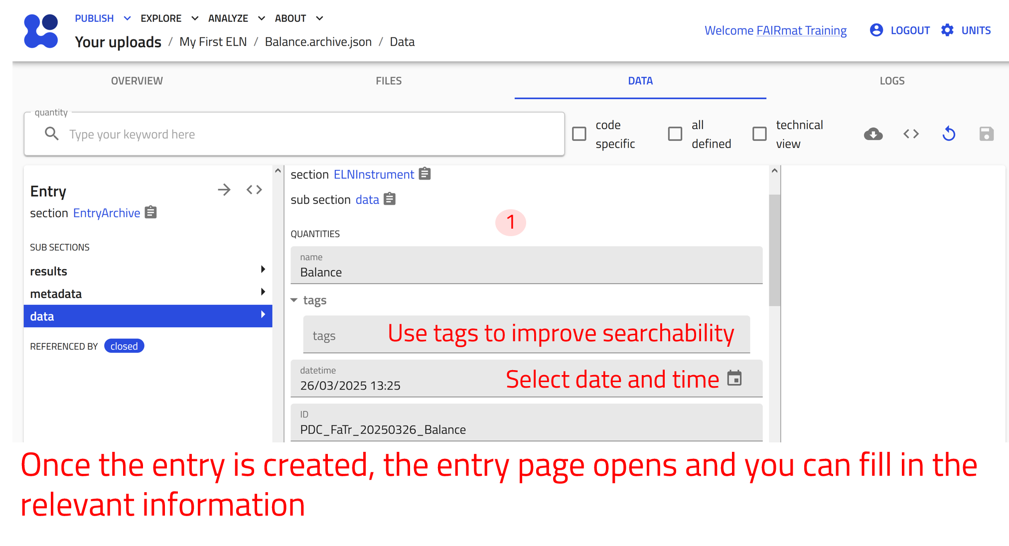 - Create and manage an ELN upload in NOMAD