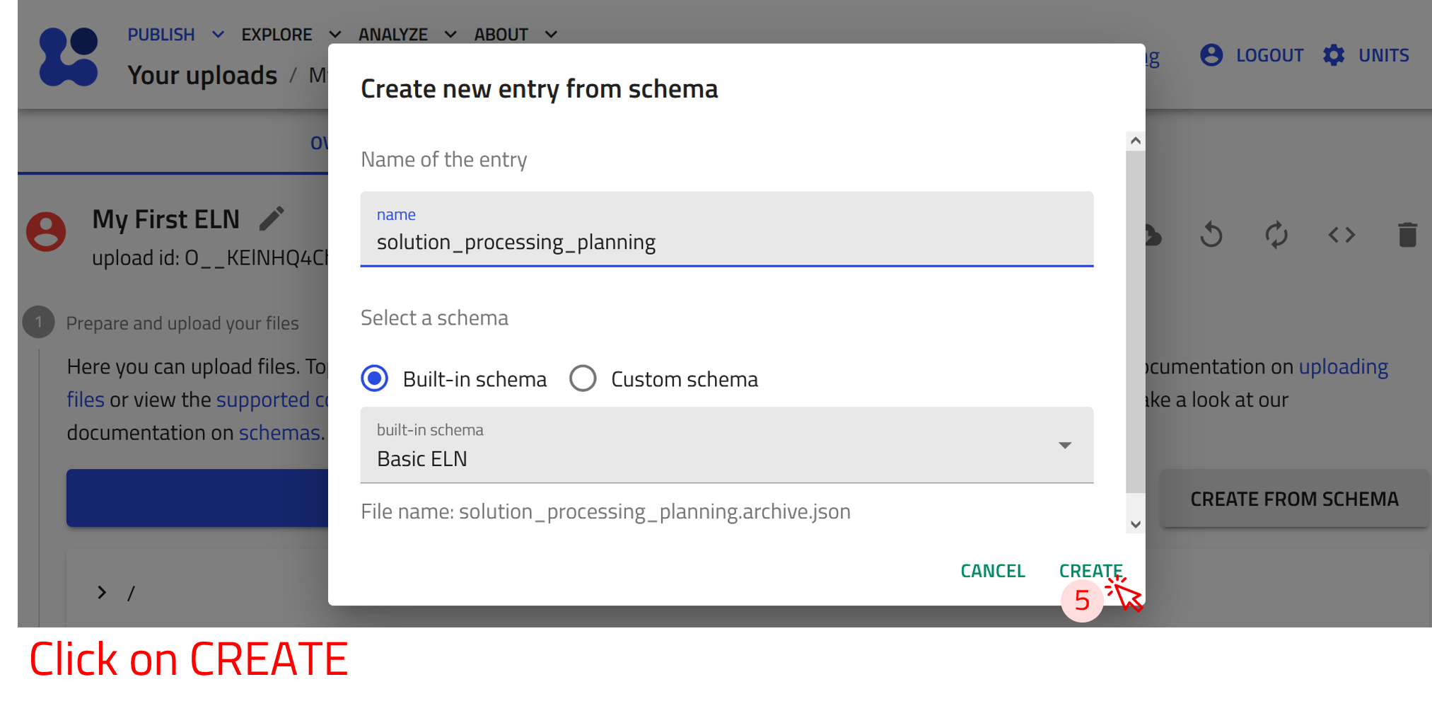Create a new ELN upload¶