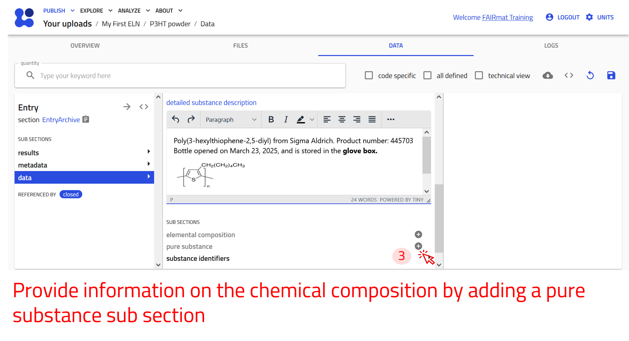 Use the arrow buttons ⬅️➡️ below to follow the steps for filling in a substance entry.